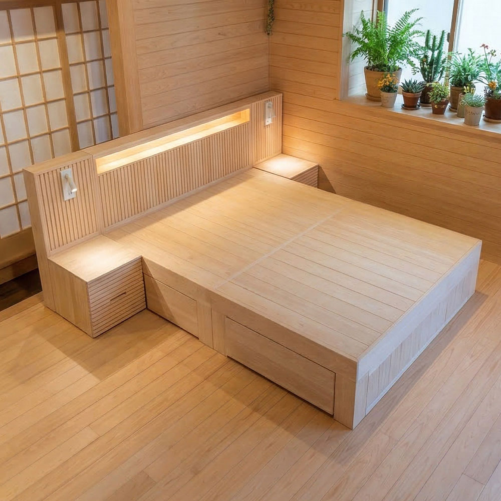 편백 호텔형 침대 LED협탁 세트