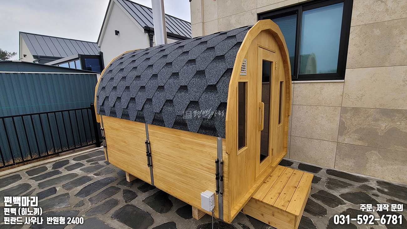 편백 핀란드 사우나 반원형 설치 완료되었습니다. |