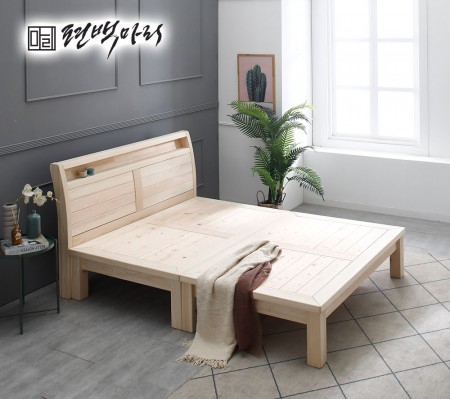 - 편백 통원목 LED 선반형 헤드 평상형 침대 104