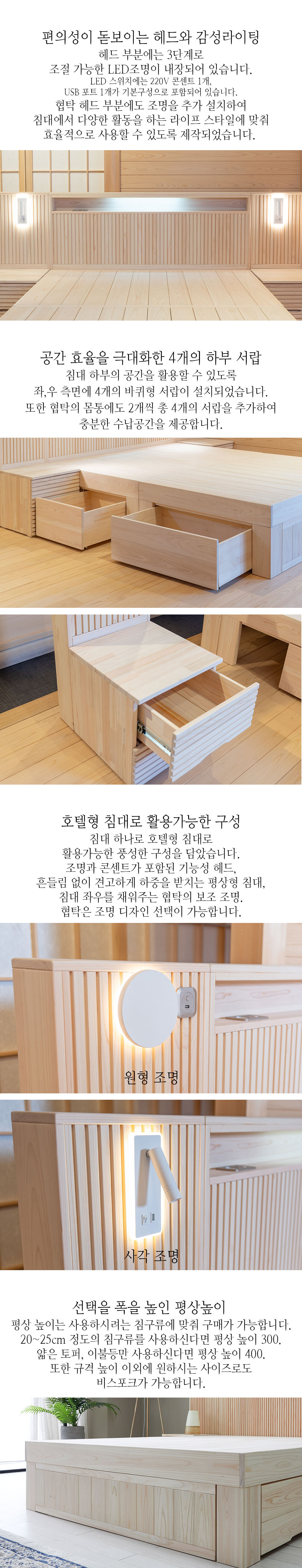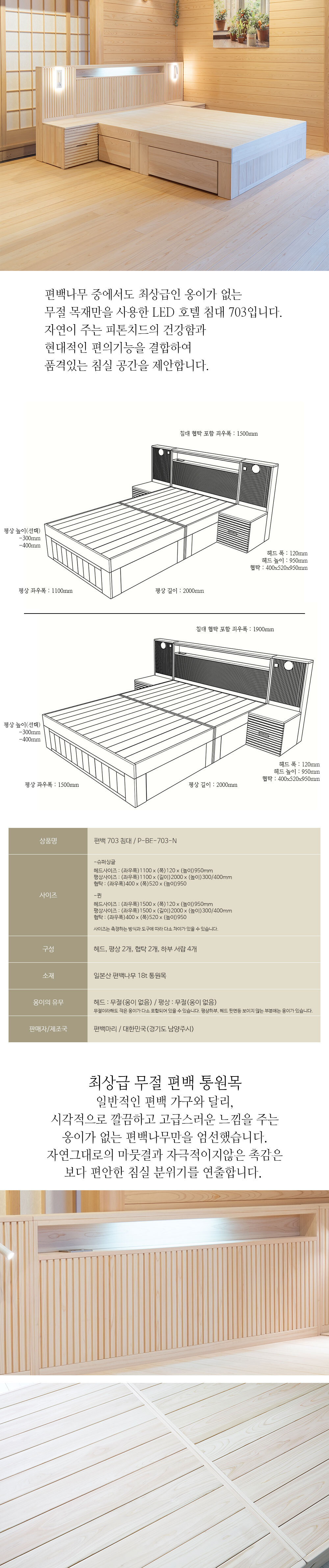 편백 호텔형 침대 LED협탁 세트